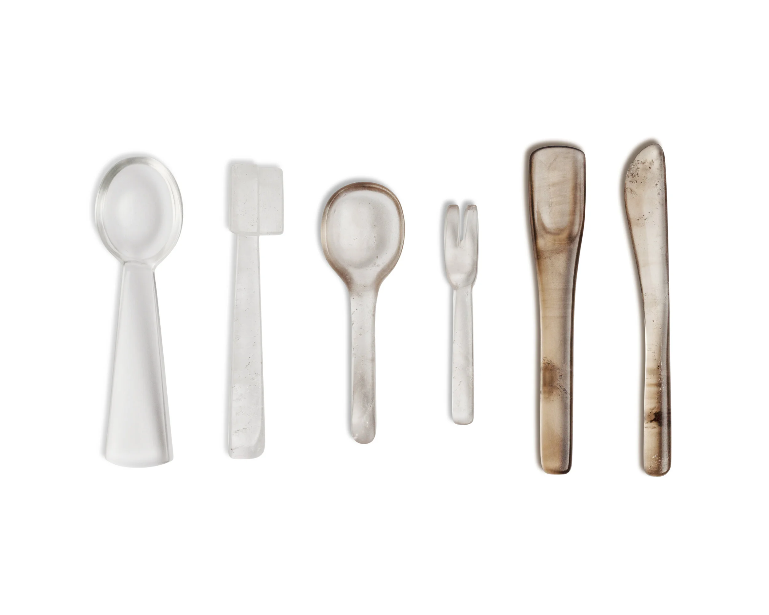 This is a collaboration with the jewellery artist and stone carver, Mica Monaghi, RCA graduate. Her work is detailed, consists of stone carving with powerful materials such as: Quartz, Sodalite, Blue Lace Agate, Chrysoprase, Moss Agate.